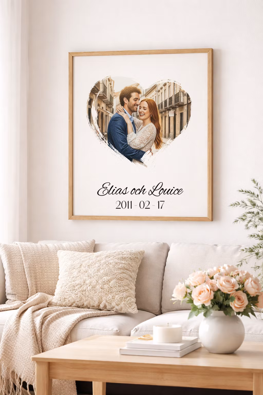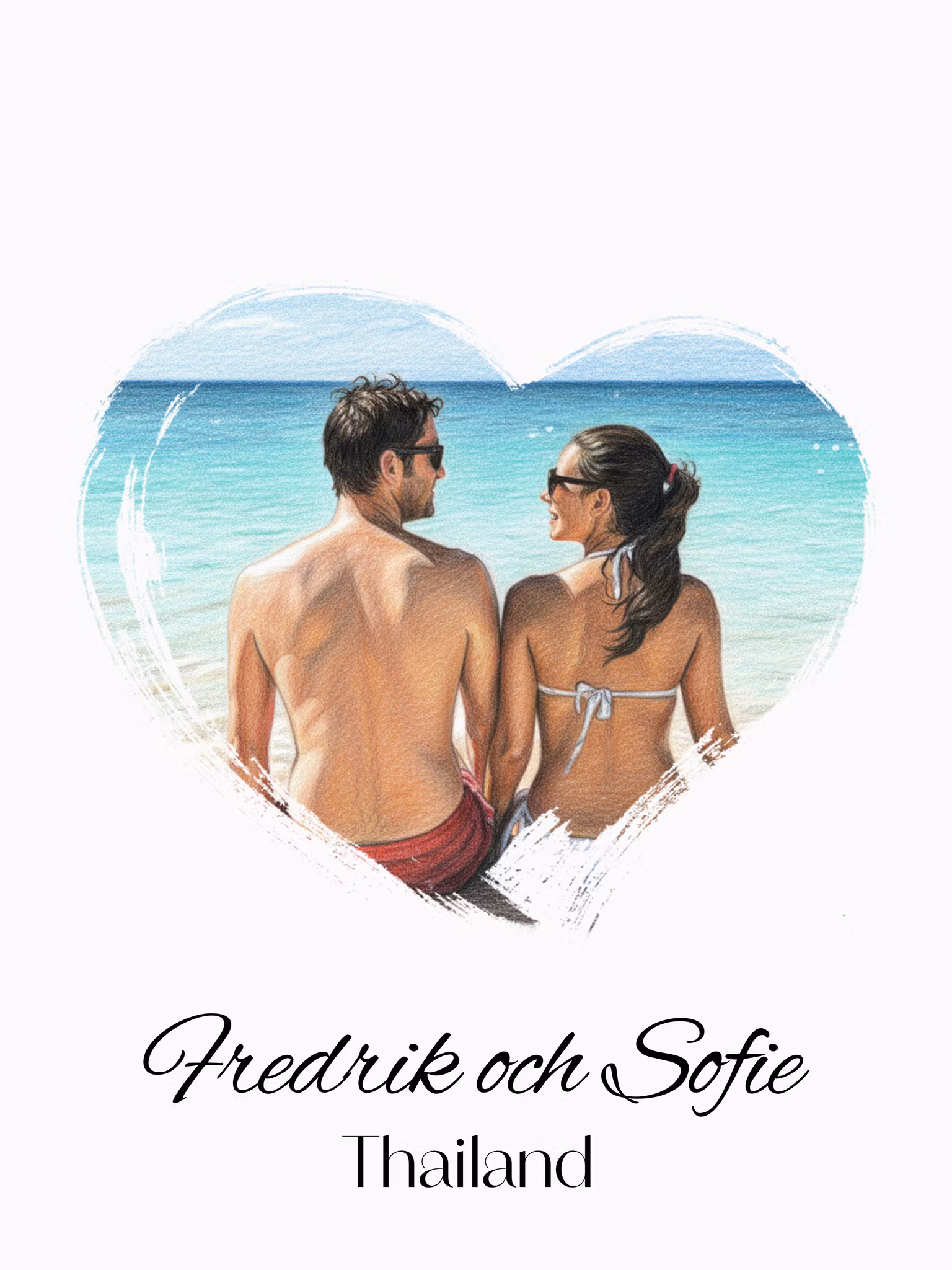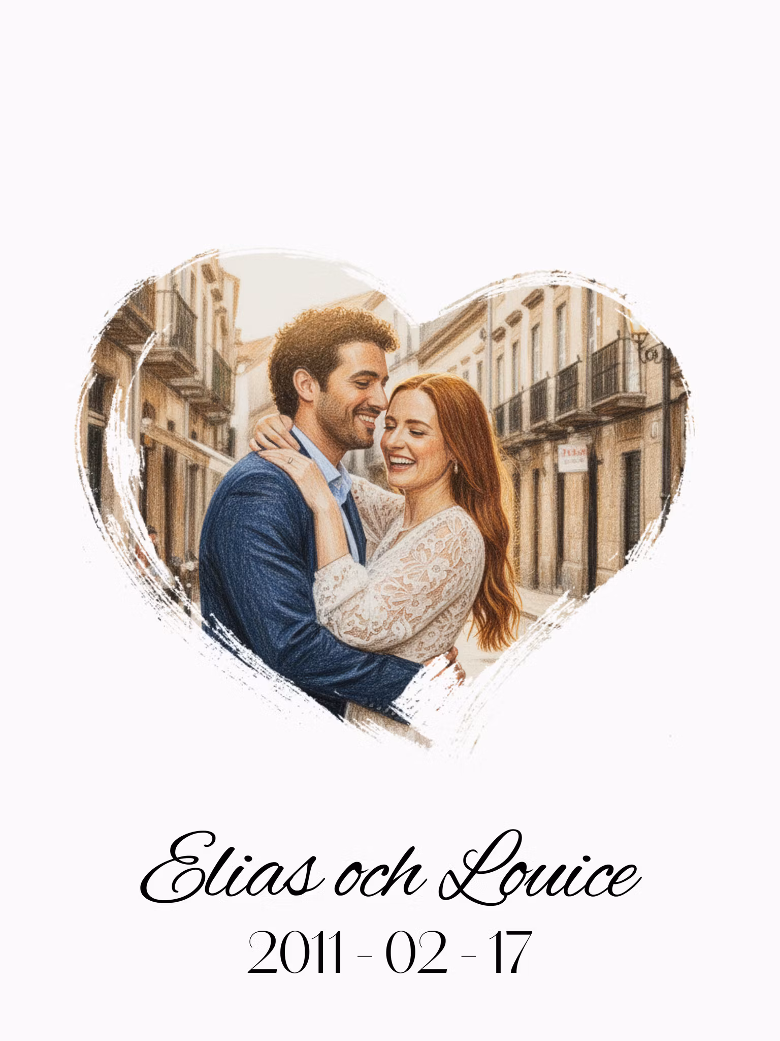 Ett porträtt i kärlekens tecken med en effekt av att vara ritat. Otroligt fina att ge bort till ett sin partner, vänner som gift sig eller för att pryda sin egen vägg med ett extra fint minne.